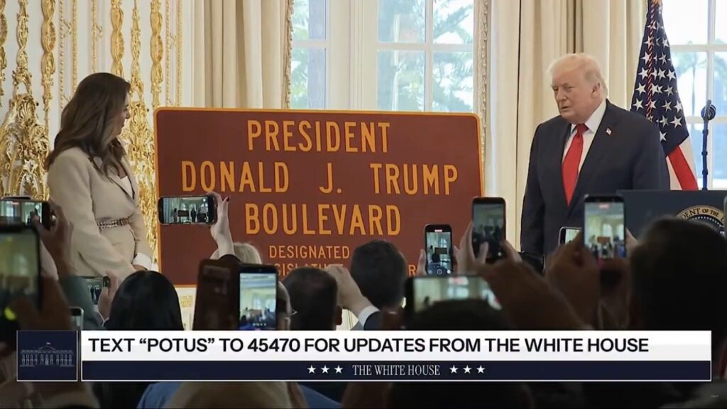 President Trump unveils the President Donald J. Trump Boulevard sign at Southern Boulevard Dedication Ceremony President Trump will participate in a ceremony this afternoon, where a four-mile stretch of Southern Boulevard between the airport in West Palm Beach, Florida, and his Mar-a-Lago resort will be formally renamed “President Donald J. Trump Boulevard.” The “Southern Boulevard Dedication Ceremony” will be held at Mar-a-Lago. Per CBS 12: Six months after Palm Beach County commissioners voted 7-0 to rename a stretch of Southern Boulevard after President Donald Trump, a dedication ceremony for the formal name change will take place today. President Trump is expected to attend the ceremony today at Mar-a-Lago at 3:15 p.m. when the segment of Southern Boulevard between Kirk Road and South Ocean Boulevard —…
