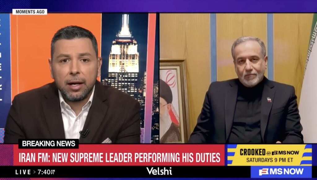 Iranian Foreign Minister Abbas Araghchi appears on MSNBC as he confirms that Iran maintains “military cooperation” with strategic partners Russia and China Iran’s Foreign Minister Abbas Araghchi has openly admitted that the Islamic terror regime is receiving active “military cooperation” from Russia and China, confirming the worst fears of the axis of evil now openly uniting against America and its allies in the escalating Middle East war. The revelation came during an exclusive interview with MS Now, in which Iranian Foreign Minister Abbas Araghchi confirmed that Tehran maintains ongoing military cooperation with Moscow and Beijing, though he refused to provide details. MS Now’s Ayman Mohyeldin pressed Araghchi on mounting reports that Russia and China may be providing targeting intelligence and military support to help Iran strike U.S….